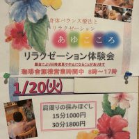 大人気のリラクゼーション体験会開催致します 1月20日(火)8時~17時(珈琲舎 源  営業中)  セラピスト(中村 愛さん)が肩もみほぐしで癒してくれます   入店時、出来る限りマスクの着用、手指消毒等の徹底 …