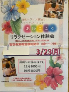 大人気のリラクゼーション体験会開催致します