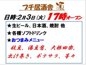 2月3日(火)17時 プチ居酒屋 源